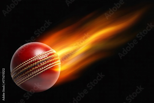 Fiery cricket ball hurtling through the air sports equipment action shot