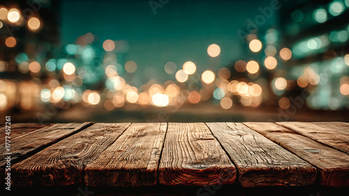Premier plan en planche en bois et arrière plan lumineux fou