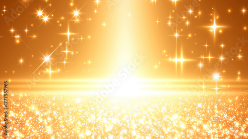 ゴールドのキラキラと光のパーティクル背景