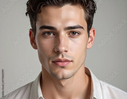 Portrait of a young man with brown hair, light skin, and direct gaze
