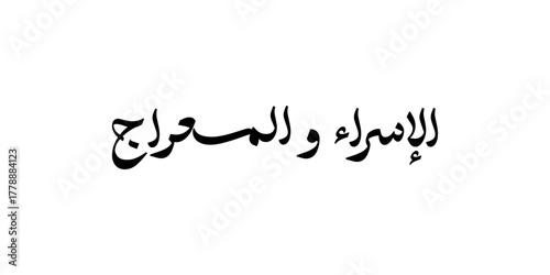 Arabic calligraphy, TRANSLATED: Night of Journey and Ascension. Describing the journey of Prophet Mohammad from the Sacred Mosque to the Farthest Mosque. Israa and Miraj