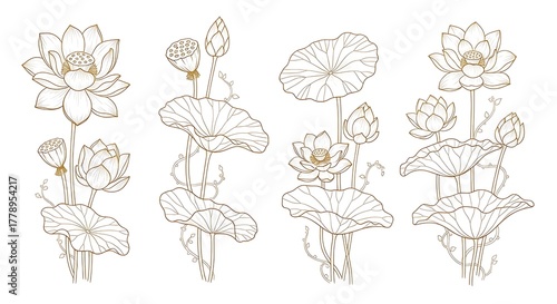 Delicate line drawings of blooming flowers in a vertical arrangement
