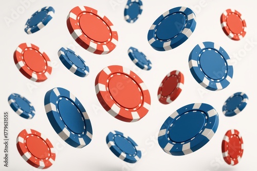Red and Blue Casino Chips Floating Isolated on White Background - fichas de cassino flutuando no ar, pôster de cassino online