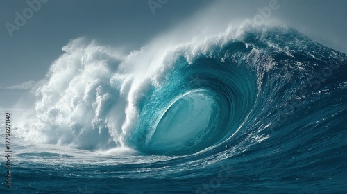 massive wave curling powerfully revealing oceanic force and dramatic beauty at teahupoo surf break in tahiti