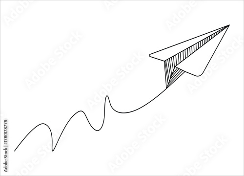 Paper airplane flying high with dynamic trail symbolizing growth and aspirations on a white background for various design needs
