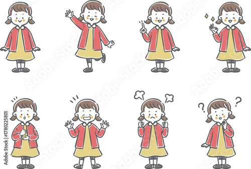 いろいろな表情の女の子のイラストセット 全身 ベクター