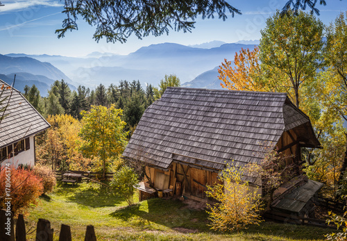 RENON, ITALY - 13 OCTOBER 2017: Autumnal view of typical Maso. Maso is traditional South Tyrol farm