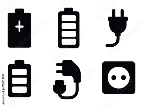 Battery and plug icons on black background