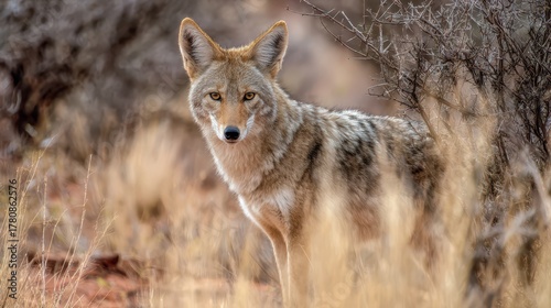 Texas Hunter. Coyote, a Wild Predator Dog in West Texas Wildlife