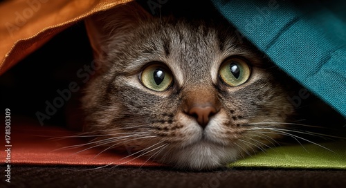 Reveal the Feline Surprise: A Cute Cat Escaping from a Colourful Bag