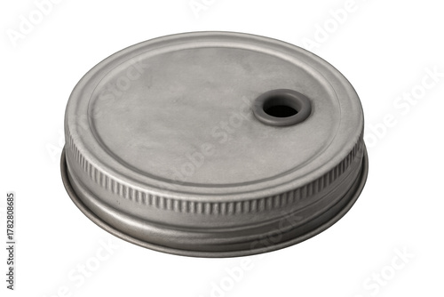 Metal mason jar lid with straw hole