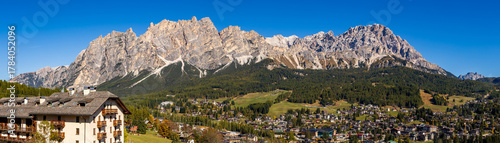 Cortina d'Ampezzo in the afternoon sun - view and rock ridge above the city