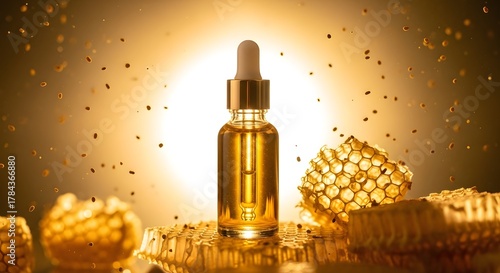 Golden Honey Serum Dropper Bottle with Honeycomb and Radiant Glow