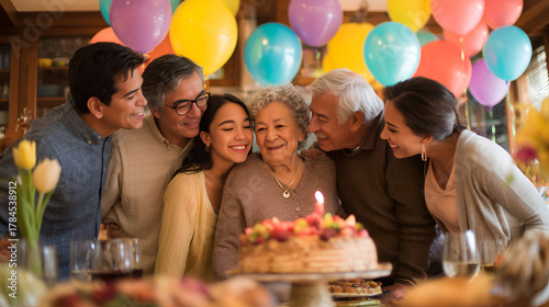 Candid, joyful moment of a multigenerational Hispanic family celebrating a birthday together. Authentic family photography filled with color, warmth, and connection.