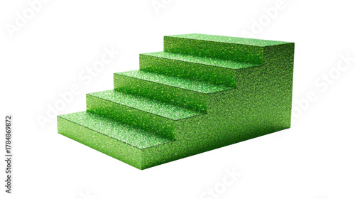 Sparkling green staircase platform prop with shimmering glitter texture for product display, creative design and modern promotional presentations setting on white background