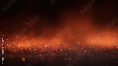 Fire embers and glowing sparks rising over dark black background, warm fiery particles frame from top and bottom