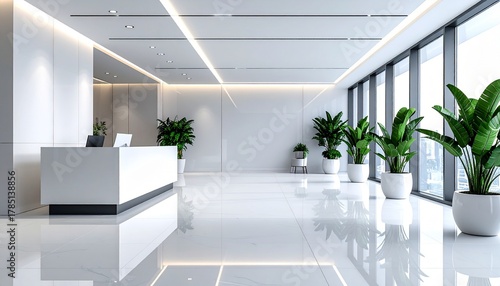 モダンオフィスの受付ロビー – 洗練された企業空間と清潔感のある内装