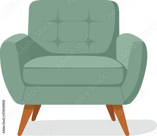Cozy mid century modern armchair in calming sage green, inviting comfort and stylish retro home decor inspiration.