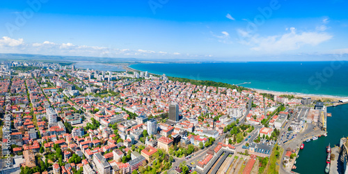 Burgas city centre aerial panoramic view in Bulgaria