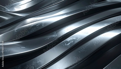 ダークグレーの金属質感に柔らかな光の筋と反射が広がる抽象的なバーチャルテクスチャ。 未来的で洗練された印象を持ち、テクノロジーやデザイン演出に最適。