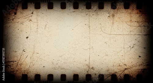 Vintage Film Strip Background with Grunge Texture and Vignette Effect.