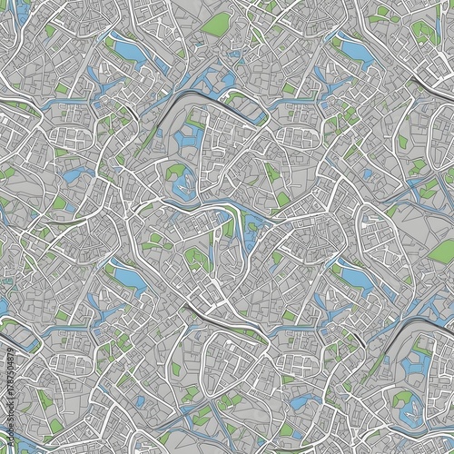 Detailed digital map showcasing an urban area with roads, waterways, parks, and various city infrastructure features