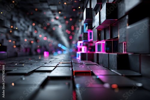 Futuristischer Tunnel aus Würfeln – Symbol für Technologie, Datenfluss und Innovation