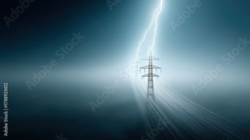 Power Grid Lightning Strike - Energy & Technology Stock Photo