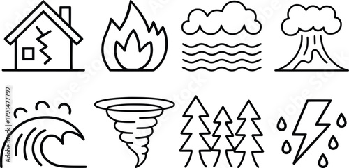 Natural Disaster Icons Vector Set.