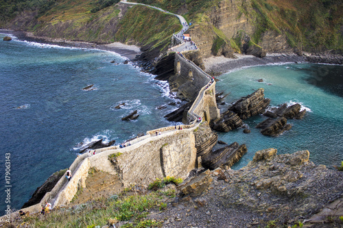 Sunset at San Juan de Gaztelugatxe, a famous peninsula in the coast of Bermeo, Basque Country, Spain