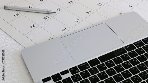 パソコンとカレンダー シフト調整 スケジュール管理 16:9