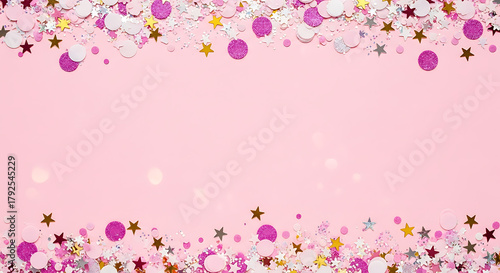 Festive Confetti Border on a Soft Pink Background, Celebrating Moments of Joy and Merriment