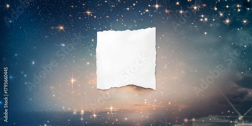 Mensagem de luz e esperança, pedaço de papael rasgado em branco em fundo cintilante nortuno