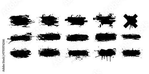 Ink splashes stencil very detailed collection. High quality manually traced. Black inked splatter dirt stain splattered spray splash with drops blots. Isolated Silhouettes dirty liquid vector grunge