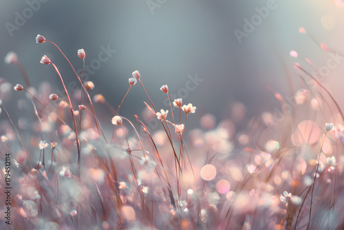 ethereal pastel meadow with glowing blur and soft floating light creating a romantic dreamy atmospheric tone
