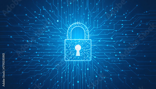 Symbol niebieskiej kłódki koncepcja cyberbezpieczeństwa i ochrony poufnych danych