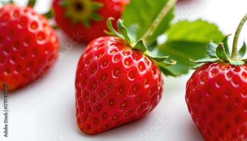 A fresh assortment of strawberries, all ripe with vibrant red interiors, each one boasting its own unique texture