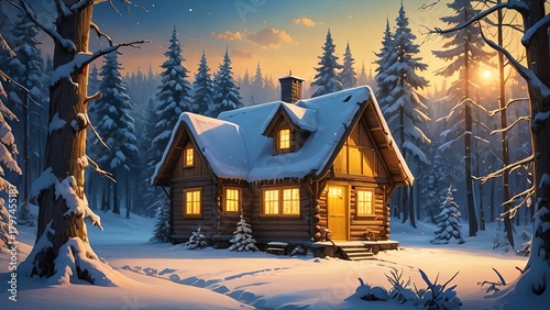 雪の森の暖かい山小屋|Cozy Cabin in Snowy Forest