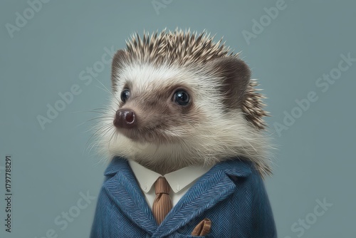 Charming Portrait of a Young Hedgehog Dressed in a Suit: A Whimsical Animal Illustration