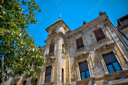 Ljubljana, Slovenia – July 14, 2025: A decaying yet striking example of Secessionist architecture in Ljubljana, Slovenia,