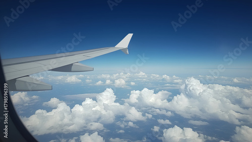 Airplane Wing Above the Clouds. A Serene Airplane Window View
