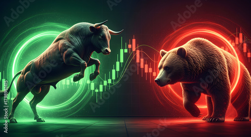 Bull and Bear Clash Stock Market Dynamics Illustration, symbolizes bullish vs bearish in the stock market