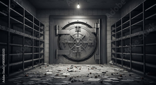 Empty bank vault after robbery leaving debris on floor