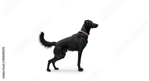 Elegant black labrador retriever stands alert on a pristine white backdrop