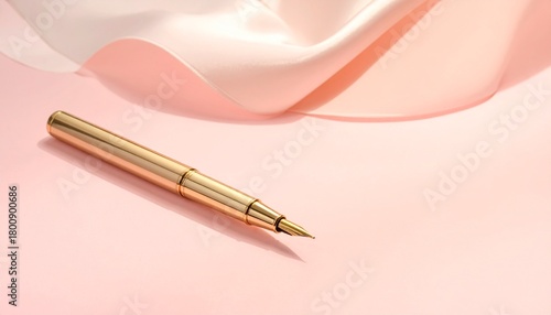 ウォームブラッシュの暖かい背景に、繊細なゴールドペンを一つだけ置いたフェミニンで洗練された雰囲気の写真です。 柔らかな光がゴールドの上品な輝きと細いフォルムを美しく引き立てます。