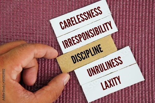 Words opposite to discipline are Laxity, Irresponsibility, Unruliness, Carelessness. Responsibility, on the other hand, teaches them ownership of their actions, their words, even their mistakes.