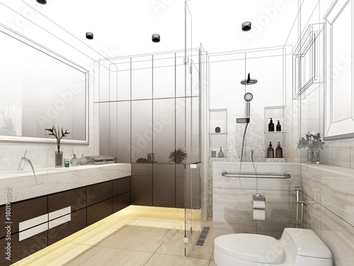 abstract sketch design of interior bathroom ,3d rendering