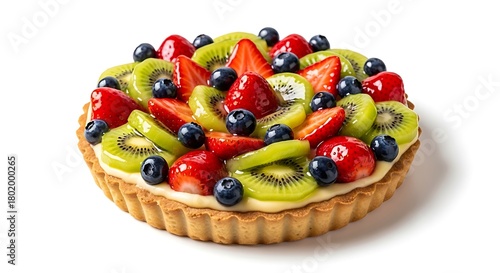 Delicious fruit tart with fresh strawberries kiwi and blueberries a sweet dessert for bakery or cafe