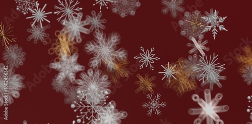 Abstract snowflakes on a maroon background creating a festive winter season feeling and atmosphere, perfect for greeting cards or hol