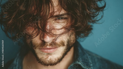 A blend of fashion and positivity: the modern man's charismatic aura. Scifi poster. The idealistic persona: an elegant portrait in denim's simplicity. Promotional poster. Blockbuster art.